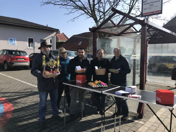 Auch in diesem Jahr organisierte der SPD-Ortsverein Flörsheim-Dalsheim wieder eine Ostereieraktion vor der Bäckerei Scheubeck in Flörsheim-Dalsheim.