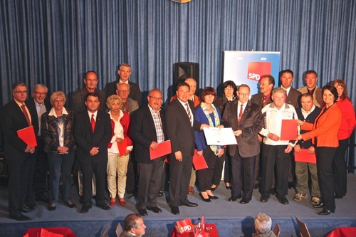 Im Rahmen dieser erstmalig durchgeführten Veranstaltung wurden die Ehrungen aller sieben Ortsvereine für 25jährige bzw. 40jährige Parteimitgliedschaft in der SPD zentral in Zusammenarbeit mit den Ortsvereinen in Form einer Matinée mit musikalischer Umrahmung von „Zwo wie mir“ (Georg Bott und Stephan Hoffmann) durchgeführt.